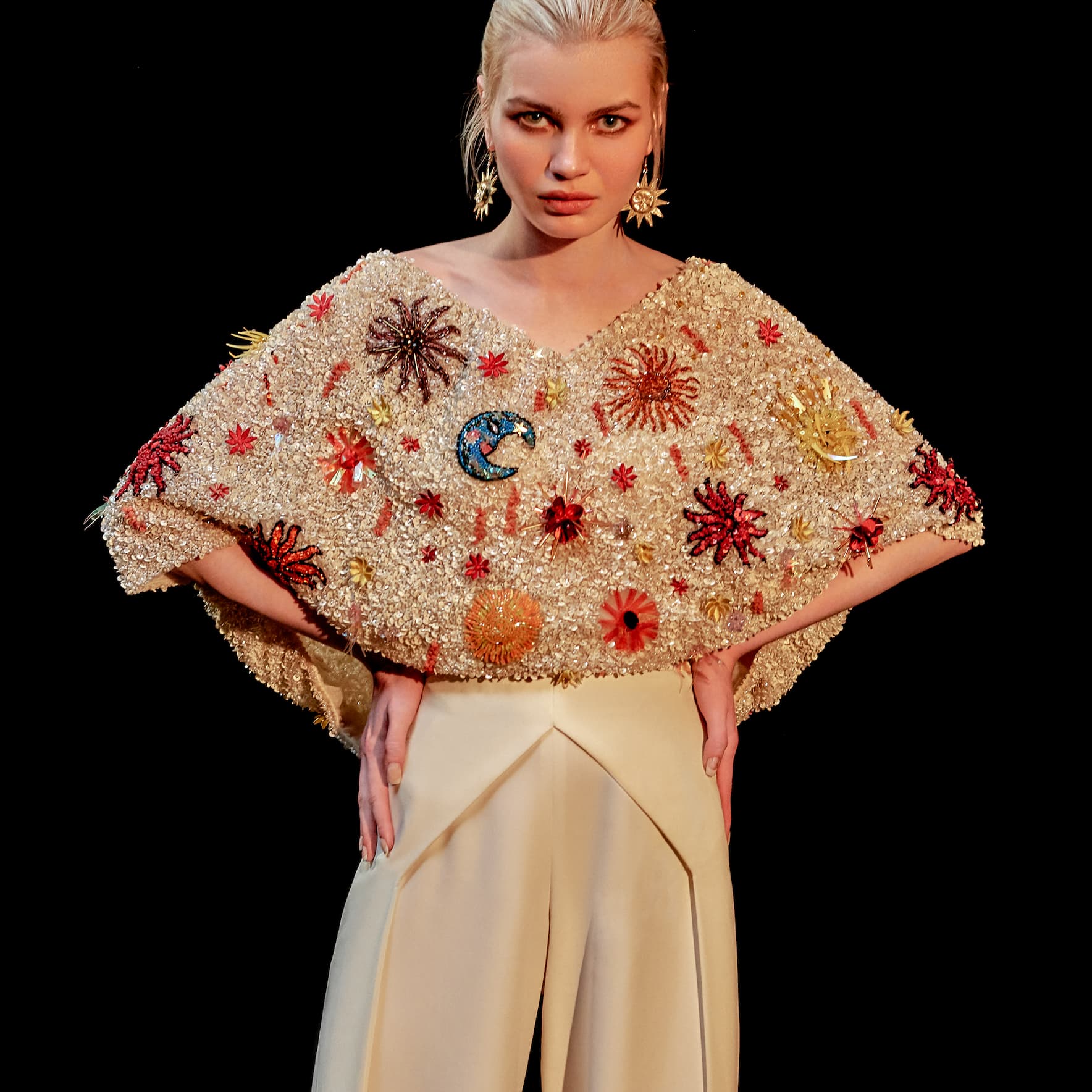 This Couture collection by Shahira Lasheen is inspired by the cosmic power of the sun, symbolizing strength, femininity, and radiance. Each piece embodies the sun’s warmth, energy, and celestial beauty, drawing inspiration from sunlight, cosmic cycles, and celestial elements. The collection celebrates strong, luminous women who guide, inspire, and lead—mirroring the sun’s life-giving force.
